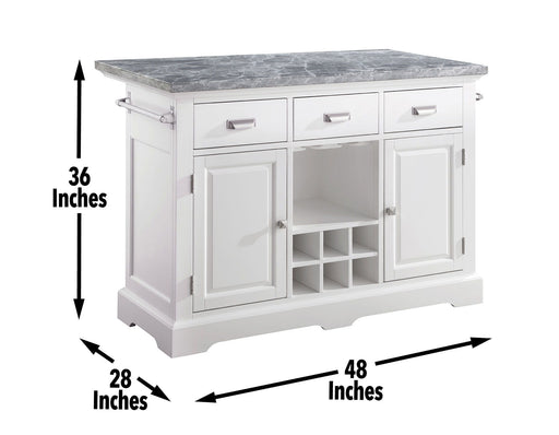 The well appointed Zermatt Grey Marble Top Kitchen Island will be the place to gather in your home for work, dining or just socializing. The clean ...