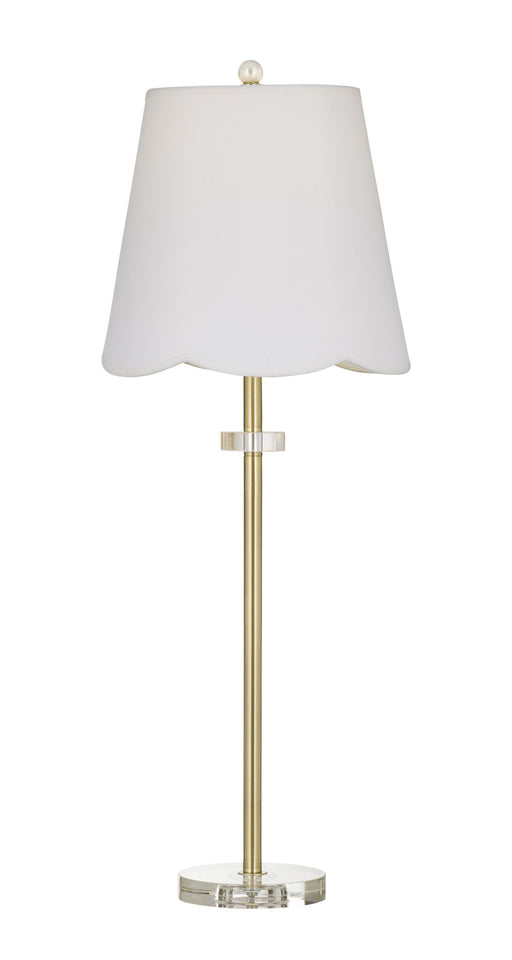 The Addison Table Lamp brings chic glamour to any space with its sleek gold and acrylic base. A scalloped white shade softens the look, casting a w...
