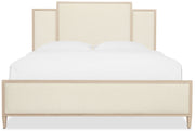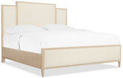 Make a grand statement with this panel bed, designed with graceful tiers of soft fabric and a polished limestone oak veneer frame. Ideal for spacious primary suites.