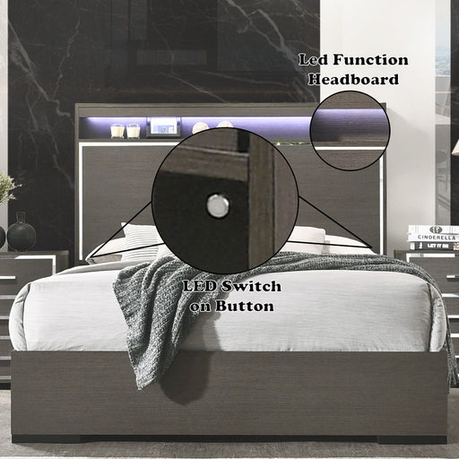 This contemporary bedroom set offers the perfect blend of elegance and glam while maintaining practical simplicity. It's grey oak finish, and acryl...