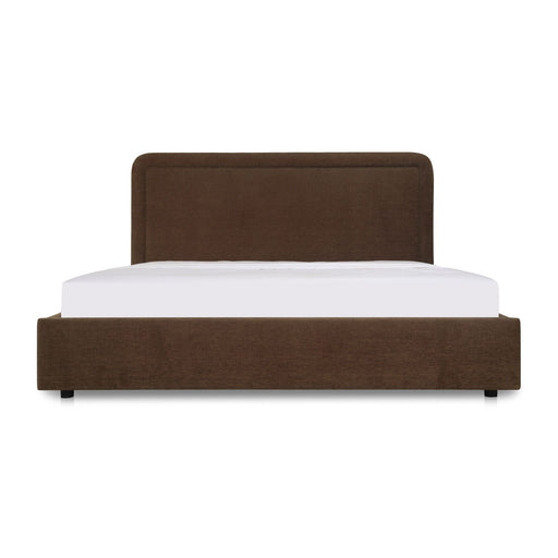 A bed with a hidden trick. The Simon Bed features a rounded silhouette with piped detailing, upholstered in brown polyester for warmth and durabili...