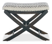Tropical meets tribal with this Retreat Camp Stool Bed Bench. Featuring a seat upholstered in the patterned Jafar Grey, it has an X-base design. The base and stretcher are crafted of wood finished in the Sand finish, transparent by design to showcase the unique grain patterns of the wood veneer.