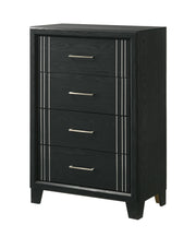 This elegant bedroom collection presents a sophisticated ensemble perfect for creating a refined modern aesthetic in your sleeping quarters. The suite features a sleek, minimalist design with crisp, clean lines and a rich finish that exudes contemporary charm. Anchoring the set is a robust panel bed with a prominent headboard, promising a sturdy and stylish centerpiece. Flanking the bed are complementary case pieces, offering ample storage with their smooth-gliding drawers accented with chic silver-toned hardware.