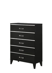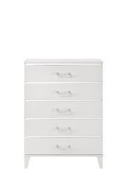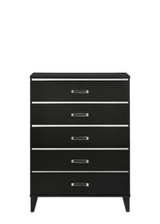 Explore modern simplicity that easily improve your overall aesthetic. The contemporary lines of this chest works perfectly with the temping finish, while decorative sliver trims add depth and reflect light. It offers five storage drawers with clear acrylic bar handles that bring a voguish, high-end feel to the piece. Simple design with clean lines let this chest can work well in rooms of all styles.