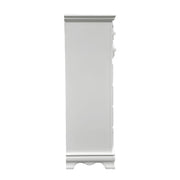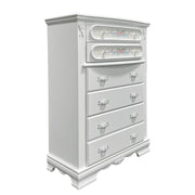 5 Drawers (Oversized Bottom Drawer with Double Handles) Drawer: Wooden Center Drawer Glide, Dovetail Included, Felt-Lined Top Drawer Hardware: Double Crystal like Knob (2 Top Drawer), Rossete Handle (3 Bottom Drawer) Wooden Construction Case-Frame: Bow Top Shape Wood Backet Legs Rossette Inlays Anti-Tipping KIT Included ASTM F2057 - 17 ASTM F3096 - 14 Compliant (YES)