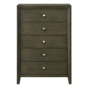 The Ilana chest features drawers in simple stature and design which offers convenient storage for any bedroom. All drawers have English dovetail with center metal glides. With small round knobs, this chest envelops your bedroom in warm notes and simple storage. The clean finish top is easy to wipe, while simple chambered feet complete a simple look.