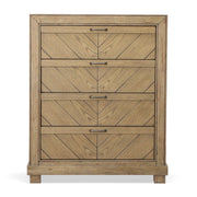 Rustic, yet refined, Montana mixes primitive design in a fashion-forward finish that delivesr the perfect chest for the bedroom. Great and useful storage offers fully extendible drawers and felt-lined top drawer to maximize storage nd keep delicate items snag-free. A warm, weathered sand stain over Chevron patterned drawer fronts combines with oil-rubbed brass hardware in a relaxed aesthetic for casual bedroom decors. Mix and match with other items in the Montana collection for just the right bedroom combination.