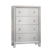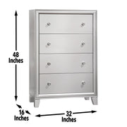 Bedroom storage in a stylish package, the Omni Chest dresses up a bedroom in glam style in this functional package. Five drawers offer ample room for clothes, including bulky items, in dazzling style with a champagne wood finish and nickel finished hardware.