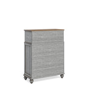 - Distressed two-tone whitewash wood finish with top surface in a dark wood finish