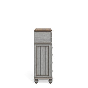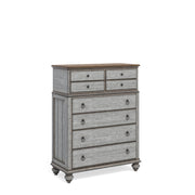 Store clothing and accessories in cozy cottage style with the Plymouth drawer chest, designed to perfectly complement our various Plymouth bed options. Attractive and practical, this drawer chest features eight drawers on premium ball-bearing glides, with two felt-lined top drawers and a cedar-lined bottom drawer to protect contents. A weathered graywash finish highlighted by a contrasting medium brown top, paneled accents and turned bun feet complete the charming vintage look.