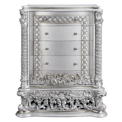 Luxurious style, sophisticated charm, and lustrous finishes are all included in the Vanaheim Bedroom Collection. Extravagant scroll floral design w...