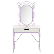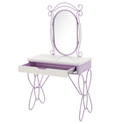 - Oval Mirror: Not Beveled, Scrolled Metal Trim, Purple Powder Coating