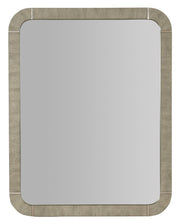 With a rustic weathered finish and clean modern lines, the striking Pinnacle Trails Mirror is crafted of Oak Veneers in a soft smoked gray Mink finish with metal accents.