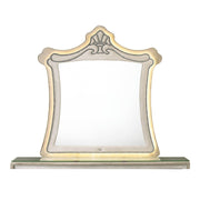 This Lucienne beige velvet upholstered wall mirror showcases a very unique and attractive design. The mirror flaunts a crown top frame with nailhead trim. The LED feature is handy when getting ready for the day, it is incorporated with mounting hardware for easiness of hanging the mirror onto the dresser. This is a must-have piece of mirror. The dresser is sold separately.