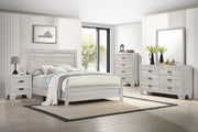 This bedroom set offers a minimalist design with a nod to rustic aesthetics, perfect for creating a serene and uncluttered space. The straightforward lines of the bed frame, combined with the wood finish, exude a sense of calm and earthiness. The accompanying pieces, including a simple dresser with a matching mirror, a functional chest, and a streamlined nightstand, are all characterized by their clean profiles and understated hardware. This collection is designed for practicality and durability, with ample storage options that cater to a hassle-free, organized lifestyle.