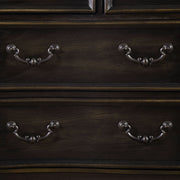 The opulent, traditional style of the Rhapsody Dresser and Mirror will transform your bedroom. Beautifully finished in rich molasses with edge rub-through to create the time-worn feel of a beloved heirloom antique. Shapely pilasters and framed drawer fronts with antique style metal drawer pulls accent the dresser. Seven drawers offer French dovetail drawer construction with side mounted, whisper-quiet, metal drawer glides for smooth function. The gorgeous mirror is surrounded by an intricately shaped, scrolling wood frame and beautiful beveled glass. Your purchase includes (1) dresser and (1) mirror.