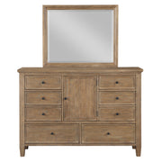 Getting ready for the day will look a whole lot better with the Riverdale Dresser and Mirror combo. Create acohesive bedroom look starting with the dresser featuring a rustic distressed finish, eight spacious drawers, and a convenient door for ample storage. The felt-lined drawers protect your delicates, while the matching mirror adds a touch of elegance and convenience. With solid pine and Asian hardwood construction, this set is built to last and infuse your bedroom with rustic character. Elevate your bedroom décor with the Riverdale Dresser and Mirror, the perfect blend of style and functionality.