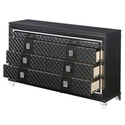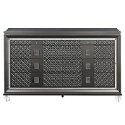 • Drawer: Sparkling Trim, Embossed Fronts, GLIDE Side Metal (Ball Bearing, 2/3 Ext.), DOVETAIL English Front & Back, Felt Lined Top Drawer Only, Safety Stop Included, Manual Close, Dust-Prof Bottom Case Only, Hardware: Single Pull Handle, Metal (Zinc Allow w/Faux Crystals)