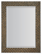 Tactile and textural, the Sundance Floor Mirror projects organic elegance with its rich brown, layered cork-like frame accented with silver-colored metal. Measuring 48 inches high by 36 ¾ inches wide, the mirror offers beveled glass.
