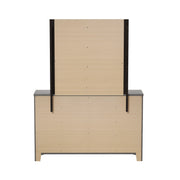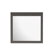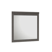 - The Thompson mirror appeals with the classic beauty of straight lines and the natural charm of its rustic details. Replicating the look of wood grain, the dark gray laminate wraps around the entirety of each piece for a seamless and uniform finish. Two industrial-inspired reading lights are integrated into the planked headboard to illuminate your favorite book or create a cozy ambiance. Thoughtful details on the case pieces include decorative corbels arcing up at the base, dark-toned bar hardware, and fully finished drawer interiors with an attractive linen print.