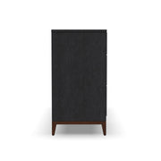 Add effortless style and architectural appeal to your living room with the Waterfall round end table. This striking table features a timeless silhouette defined by clean lines and simple geometric shapes, including a substantial sculptural crisscross base that supports the top. Group and nest this table with the coordinating Waterfall round coffee table for added visual interest and function. The Waterfall round end table is well-crafted from solid rubberwood with oak veneers and features a deep ebony finish for lasting beauty.
