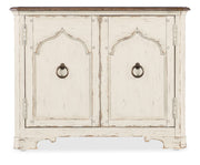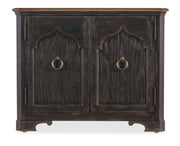 Reimagining an historical piece with a fresh take on finish, function, hardware and form, the Americana Two-Door Nightstand has shaped carved door fronts with an architectural arched design and scroll accents on the base. The two-tone finish pairs the deep on the case with the warm on the top and drawer interiors. The two doors have magnetic catches and one adjustable wood shelf behind the doors. Crafted of Oak Veneers, the nightstand has a solid-wood edge top.
