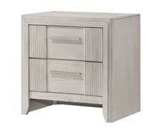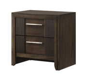 Infused with casual elegance and contemporary charm, this bedroom group brings a light, refreshing presence to any home. The wood finish is complemented by a textured, upholstered headboard with vertical channel detailing that adds comfort and visual interest. Clean lines and sleek, bar-style hardware give the case pieces a modern edge, while subtle fluted paneling provides just the right amount of dimension. Designed for both style and functionality, this collection offers ample storage and a cohesive, streamlined look that easily blends with neutral or soft-toned interiors.