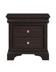 The Dominique nightstand embodies all the elegance of French design without any distracting embellishments. Clean, classic lines of Louis Philippe styling accentuate the warm merlot-stained finish of the collection. Design details like English dovetail drawer construction and whisper quiet metal drawer glides add modern conveniences to the classic design styling.