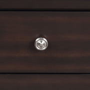 - Brushed nickel hardware offers a cool contrast to the warm merlot finish