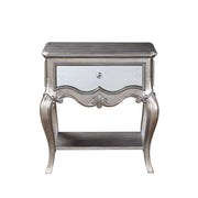 Mirrored Fronts, Glide) Side Metal (Full Ext.), Dovetail) English Front & Back, Felt Lined) Top Drawer, Safety Stop Included, Manual-Close, Hardware: Single Crystal-like Pull-Knob CONSTRUCTION] Wooden Case-Leg: (Poplar), MDF, PB, MOLDING TRIM: Poly-Resin (Raised Trim & Scrolled Base) Wooden Cabriole Leg