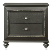 The Kaitlyn nightstand provides a commanding presence in any room. Crafted with a transitional look that is an ideal addition to any bedroom, the nightstand is accented with textured front and a crystal-like sparkling trim. Its crystal-like trimming creates dazzling glow for your master bedroom. Multiple storage drawers allow you to keep your sleeping area nicely neat.