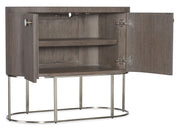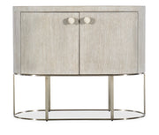 Architectural and timeless with a luxe mixture of materials, the Modern Mood Oval Nightstand is a statement piece. The shaped metal base gives the nightstand a floating appearance. Crafted with Quartered Oak Veneers, the piece is finished in a serene, crystal-like Diamond color. The two doors have soft-close hinges and magnetic door catches, and there’s one adjustable shelf behind. Finished on all sides and features wire management on the back.