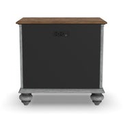 Vintage cottage style meets modern convenience with the Plymouth nightstand. Outfitted with three roomy drawers on premium ball-bearing glides to store all your bedside essentials, this nightstand also features integrated power to keep unsightly cords concealed and USB ports to charge your devices. A distressed graywash finish is contrasted with antique gunmetal pulls, while paneled accents and turned bun feet add to the unique vintage charm.