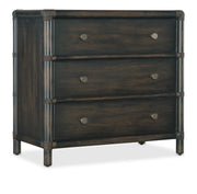 Inspired by tropical getaways, the Retreat Pole Rattan Nightstand is a blend of natural materials in a laid-back, versatile design. Crafted of Oak and Maple Veneers with Rope accents, the nightstand is finished in the sand-colored, transparent by design to reveal the unique grain patterns in the wood veneer. Featuring three self-closing drawers, the nightstand is accented by soft pewter-colored round knobs.