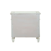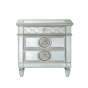 The Varian nightstand provides a commanding presence in any room. Add a dash of glam to your bedroom with this Varian nightstand, it features four tapered legs and 2 storage drawers with crystal-like knobs. This gorgeous nightstand is accented with raised geometric patterns and mirror finish. This fashionable nightstand will fuse with the surrounding Decor, transforming a room from ordinary into something interesting and sophisticated.