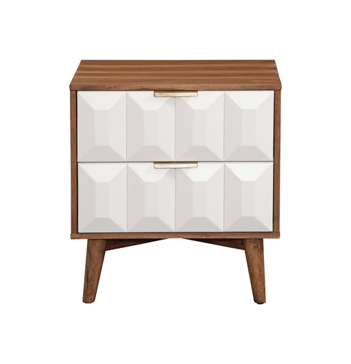 The best of mid-century modern design comes out in the Ginny Nightstand. White pyramid fronts contrast beautifully with the burnished walnut wood c...