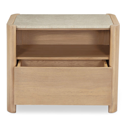 The Tommy nightstand embraces modern simplicity in a natural finish. Its distinctive racetrack capsule shape adds a contemporary touch to the bedro...