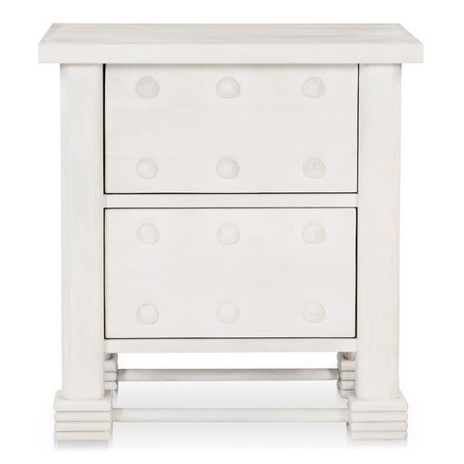 French-inspired elements and circular motifs enrich the Clement nightstand's oversized, chunky design. Crafted from mango wood with a whitewash fin...