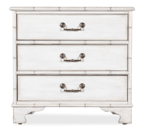 The tropical craftsmanship and botanical carving of the West Indies meets southern charm with the Charleston Three-Drawer Nightstand. Crafted of Ch...