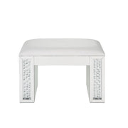 Nysa - Vanity Stool - Ivory Synthetic Leather , Mirrored & Faux Crystals