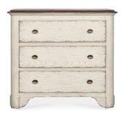 In a two-tone finish with the deep, dark Molasses on the base and the warm Honey on the top and drawer interiors, the Americana Three-Drawer Nightstand is a classic, charming design with nostalgic flair. There are 3 self-closing drawers and a solid-wood edge top. Crafted of Oak Veneers with metal alloy pulls in an antique bronze finish.