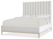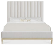 Create a serene and stylish bedroom retreat with the Cascade Upholstered Bed. Upholstered in soft, durable fabric, this bed offers a channeled fabric headboard and a wood base with tapered legs, bringing a modern, transitional feel to any space. The bed’s finish on oak veneers, accented by subtle distressing, adds texture and tranquility. Its clean lines and neutral palette make it a versatile choice for a range of interior styles. Includes headboard, footboard, and rails for a cohesive look.