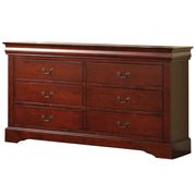 Features six drawers that provide ample space to store your clothing, bedding and linens. All drawers have brushed nicked metal hardware and center metal glides. This beautiful dresser will be the perfect complement from the most sophisticated to decor casual settings.