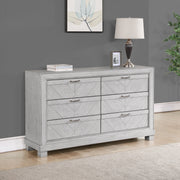 Primitive rustic design in a storage piece for the bedroom, Montana is finished in a neutral matte gray stain with satin nickel hardware in a relaxed aesthetic for casual bedroom decors. Six deep drawers with felt-lined top drawers offer plenty of storage with fully extendible drawers for optimizing the space. Pair with a Montana Mirror or use as a bedroom entertainment piece. Either way, you will love the way Montana dresses up your bedroom.