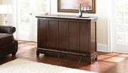 Newbury sets the standard for bars with this cherry finished free-standing bar set. A Silverstone top resists scratches and heat while the paneled front and foot rail gives any area the instant feel of a treasured library or retreat. The back side of the bar features ample room for bottle and other storage and the top features a convenient rack for hanging stemware.