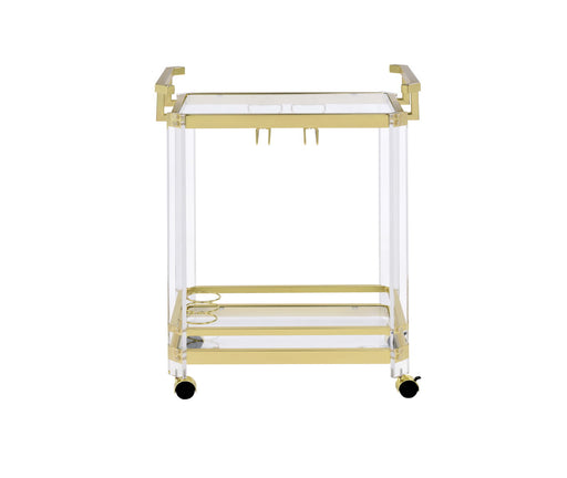 Modern meets function with the Aerin Serving Cart. Bold acrylic, tempered glass and chrome combine to create a focal point when serving your guests...