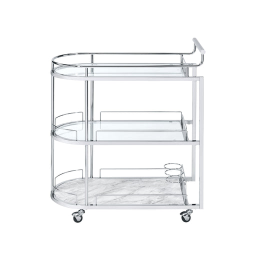 Lisses - Serving Cart - ChromeProduct Features KD, Rectangular Serving Cart Storage: 2 Open Compartments, Wine Bottle Rack, Stemware Floating Shelf...