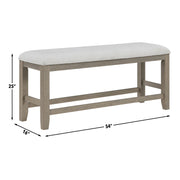 The Lily 25" Counter Bench offers crisp modern style, perfect for seating in various settings. Featuring solid wood legs and stretchers, this bench ensures durability for long-lasting use. Its greige finish and eggshell upholstered seat offer a timeless aesthetic and comfortable seating experience. From the counter to the dining area, hallway, or end of bed, the Lily Counter Bench effortlessly complements any space with its sturdy construction and crisp styling.
