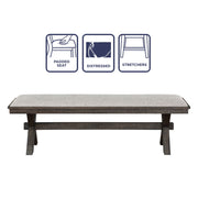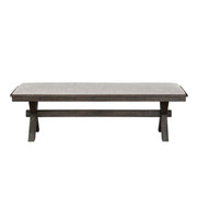 Style, comfort, and durability in a bench for dining, bedroom or hallway settings. The Riverdale bench offers authentic details like exposed tenon and a double trestle base in a seat for modern farmhouse, cottage or any casual setting. Solid Asian hardwoods and a finish let the character of the wood show through while advanced distressing techniques give the bench the feel of a time-worn antique. A comfortable, casual and stylish addition to any home environment.