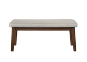 Elevate your dining space with this sleek and sophisticated dining set, designed to seamlessly blend modern elegance with mid-century inspiration. The beautifully crafted table features a warm wood finish and a unique sculptural base, adding a refined touch to any setting. Complementing the table, the gracefully curved chairs and bench boast plush upholstered seats and soft fabric backrests, ensuring superior comfort for every meal. With its clean lines and timeless design, this dining collection is perfect for those who appreciate both form and function, making every gathering a stylish and inviting experience.